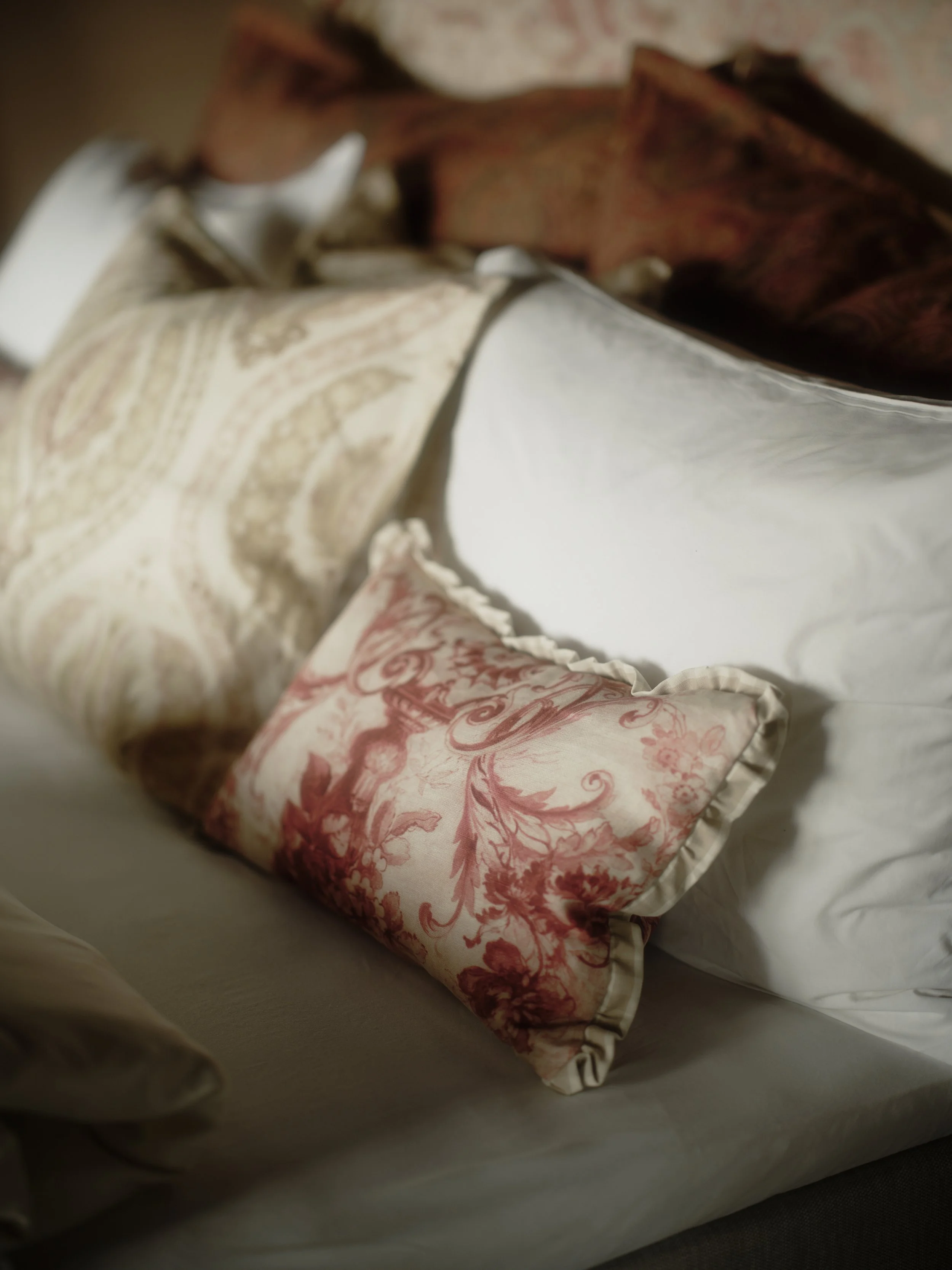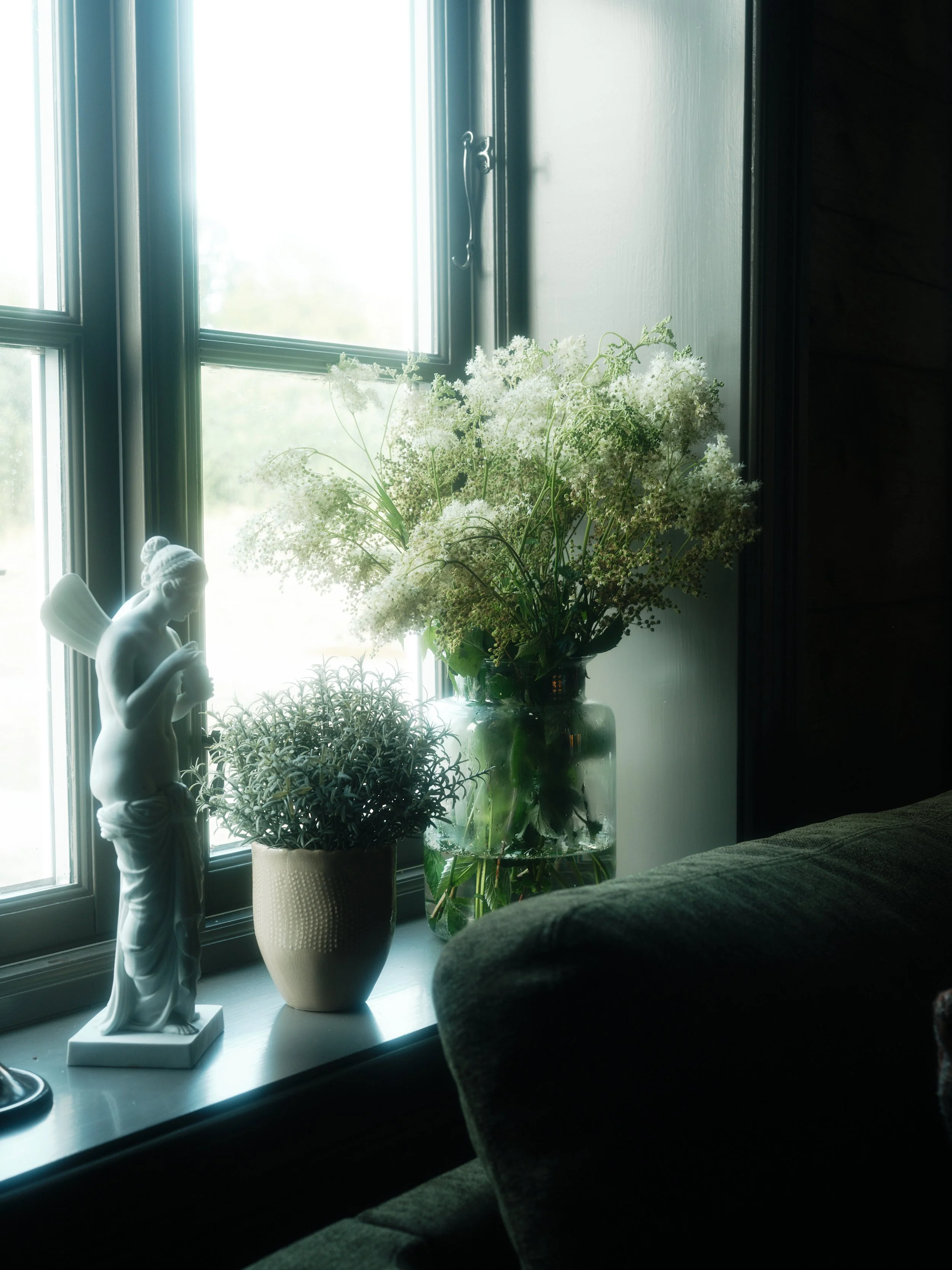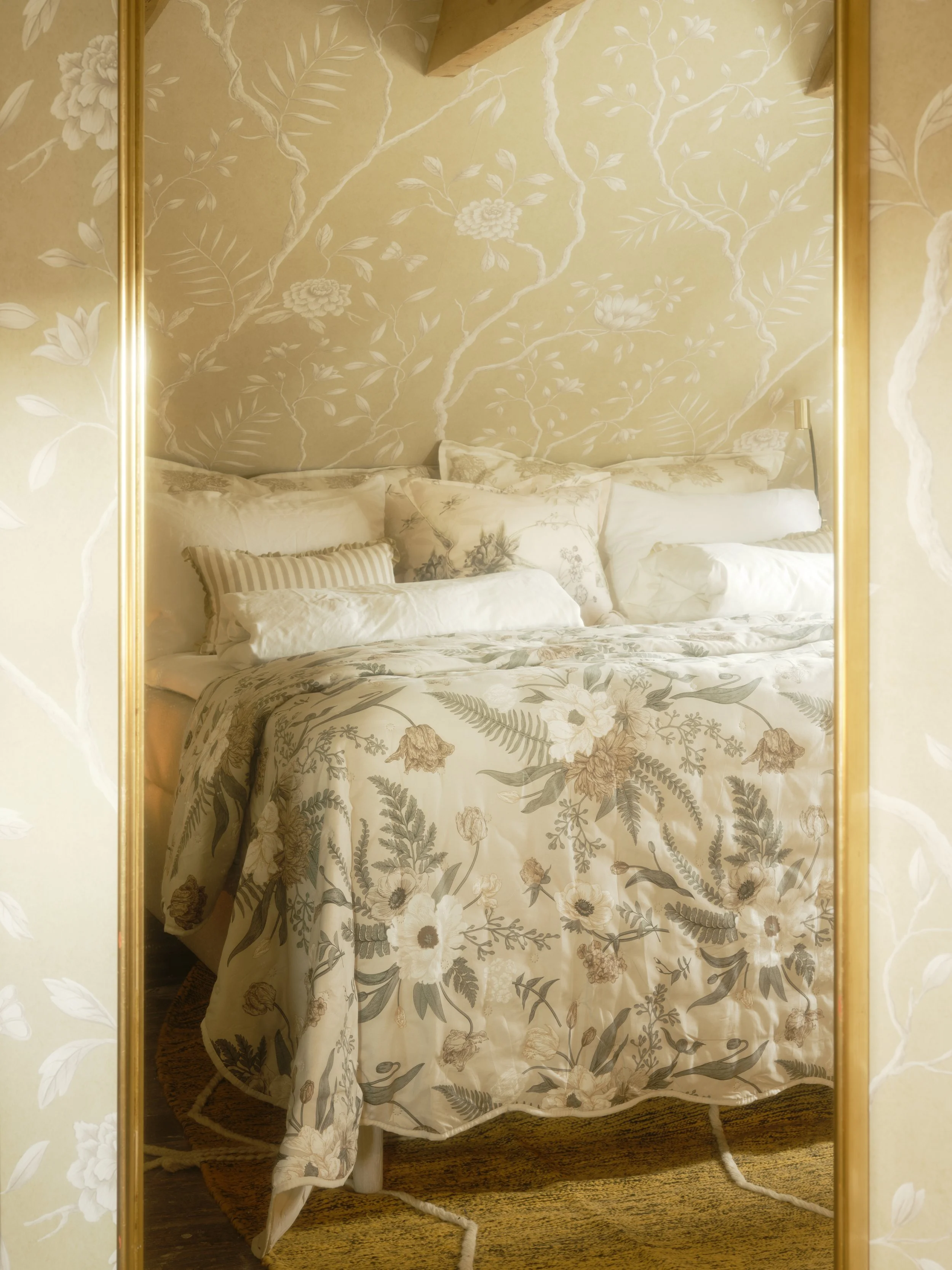 Hand-blocked wallpapers, deep windows, and a quiet language of textiles. Helmer holds the slower hours — a chamber of layered green, soft linen and the long Nordic dusk.