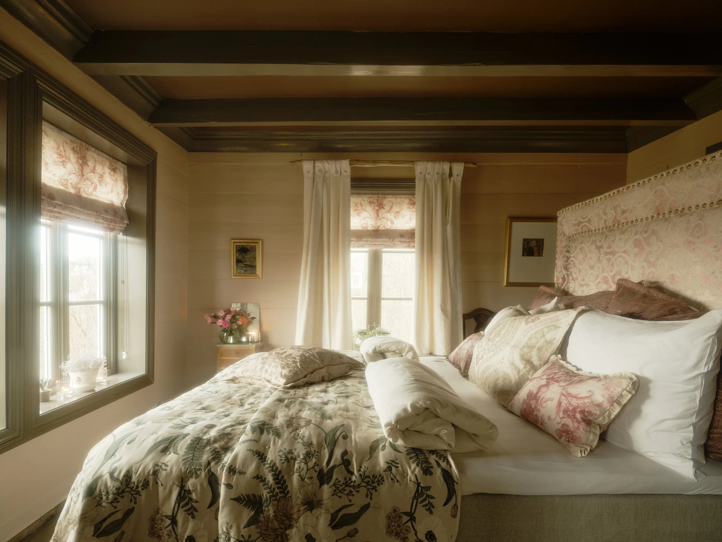 Beamed timber, gilt accents, and morning light through tall sash windows. Holberg honors the lineage of the estate — refined, restrained, and deeply lived-in.