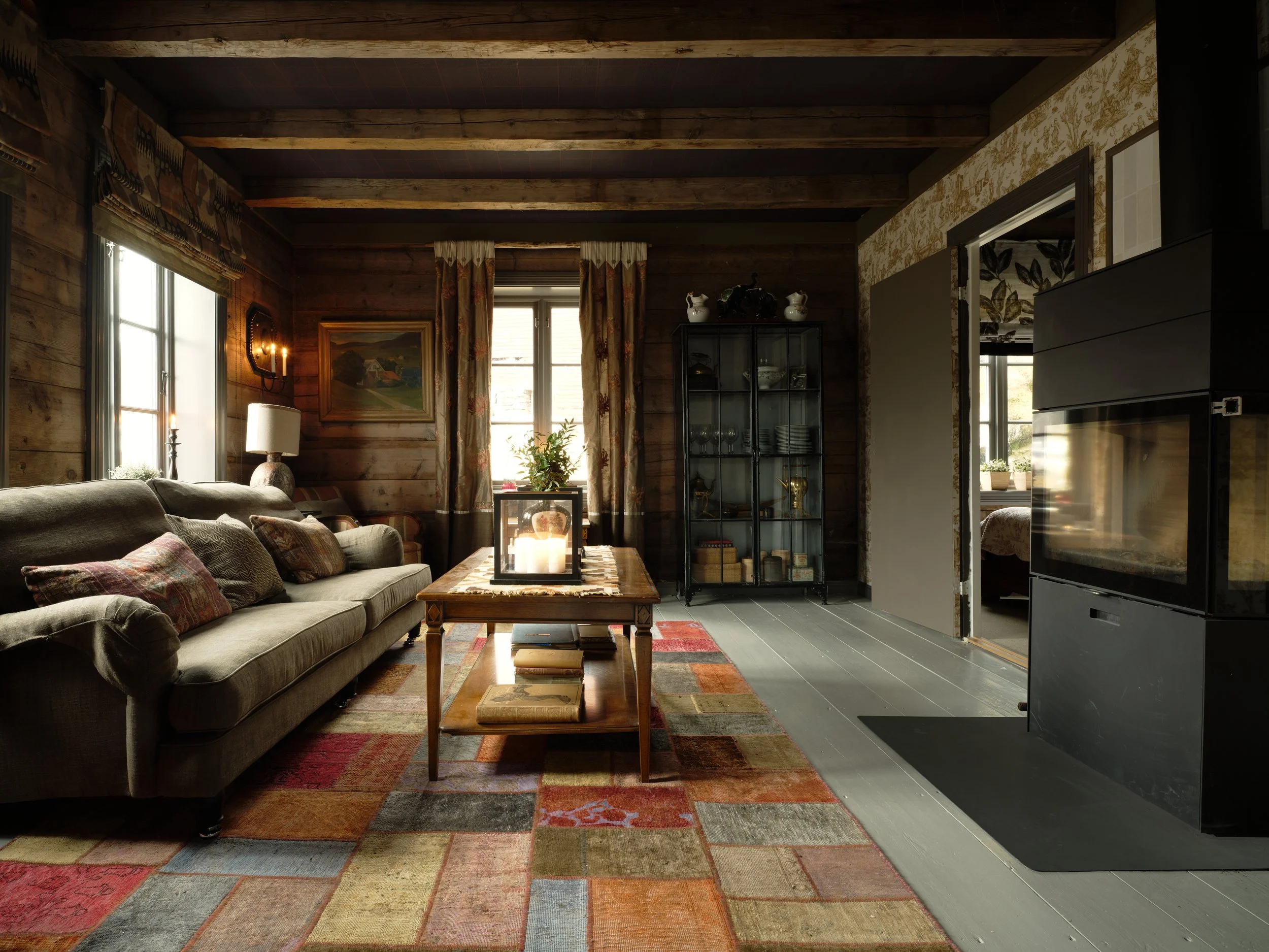 Set within historic surroundings, the living room offers a calm and comfortable space defined by original materials and a sense of continuity. It is suited for quiet evenings, reading, and informal gathering.
